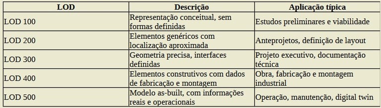 O conceito de LOD — Level of Development define o grau de maturidade de informações atribuídas a um modelo BIM. Ele permite organizar o nível de precisão geométrica, detalhamento técnico e confiabilidade dos dados conforme o avanço do projeto.